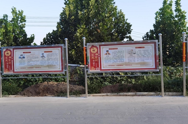 四、设置宣传载体,营造文明家园浓郁氛围。今年,集团公司为郭岗村提供3万余元帮扶资金帮助其打造了精神文明专栏,分为家风家训(名人家风)专栏,“讲文明 树新风”(孝当先、传承家风)、“文明健康 有你有我”公益广告等内容,使社会主义核心价值观深刻融入到村民的生产生活和精神世界,形成全体村民的修身行善共识和明礼守法自觉,为促进郭岗村经济健康发展、构建美丽乡村、文明家园打下良好根基。